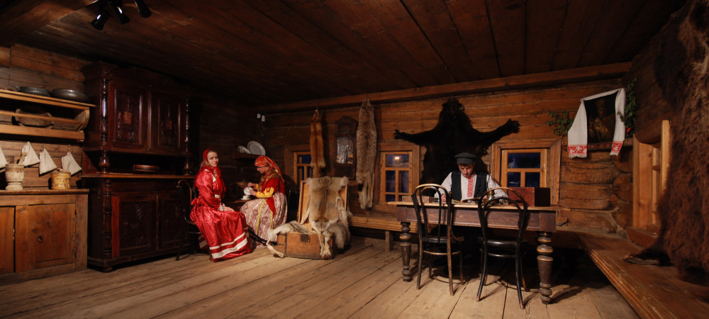 В рамках экскурсии посетители побывают в «Доме охотника» и познакомятся с практикой и обрядами одного из северных лесных промыслов, с основными орудиями лова, охотничьими трофеями, а также предметами, связанными с охотой.