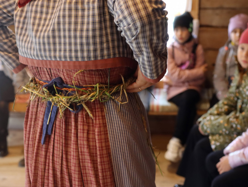 В программе: знакомство с обрядом «дожинки», участие в ритуале «завивания бороды», внос в избу последнего снопа, разучивание шуточных приговоров и причетов на похороны мух, вырезание гробиков из картофеля, «похороны» мух.